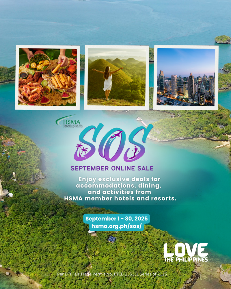 The Hotel Sales and Marketing Association (HSMA) brings back the country’s most anticipated online travel fair, the September Online Sale (SOS) 2025. You can find deals with up to 80% off on accommodations, dining, and leisure packages from almost 100 hotels and resorts across the Philippines.